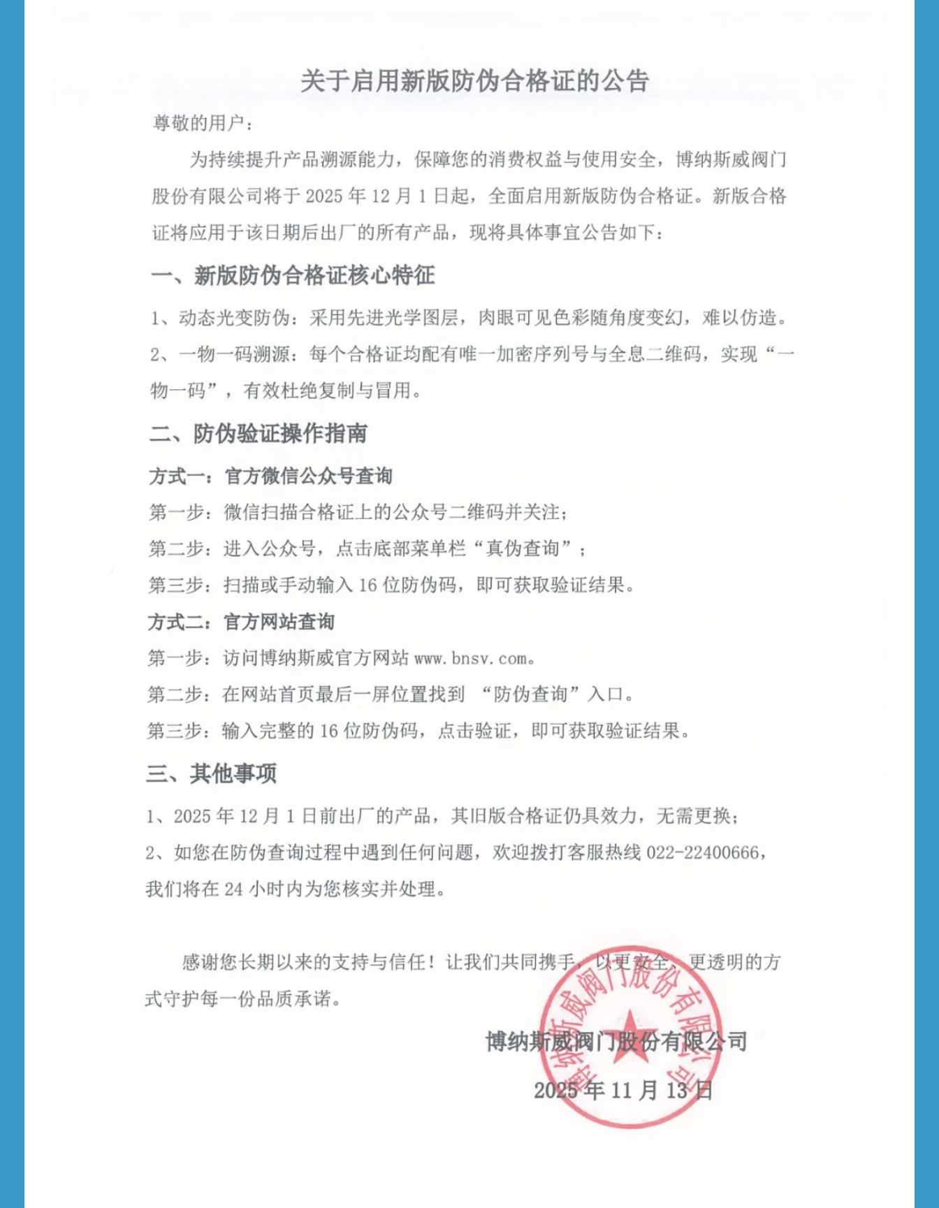 您的權(quán)益 碼上保障 | 博納斯威升級防偽合格證