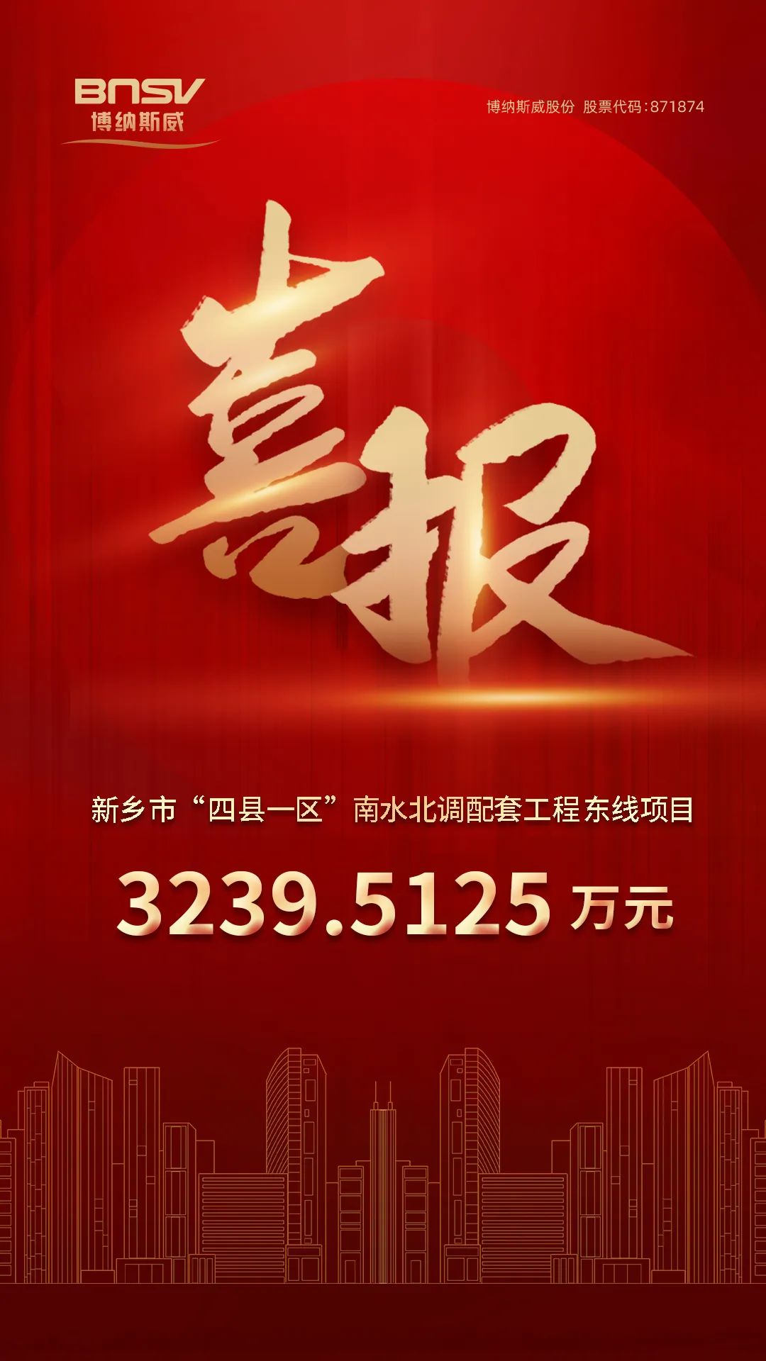 喜報(bào)!博納斯威中標(biāo)新鄉(xiāng)市“四縣一區(qū)”南水北調(diào)配套工程?hào)|線(xiàn)項(xiàng)目3239.5125萬(wàn)元