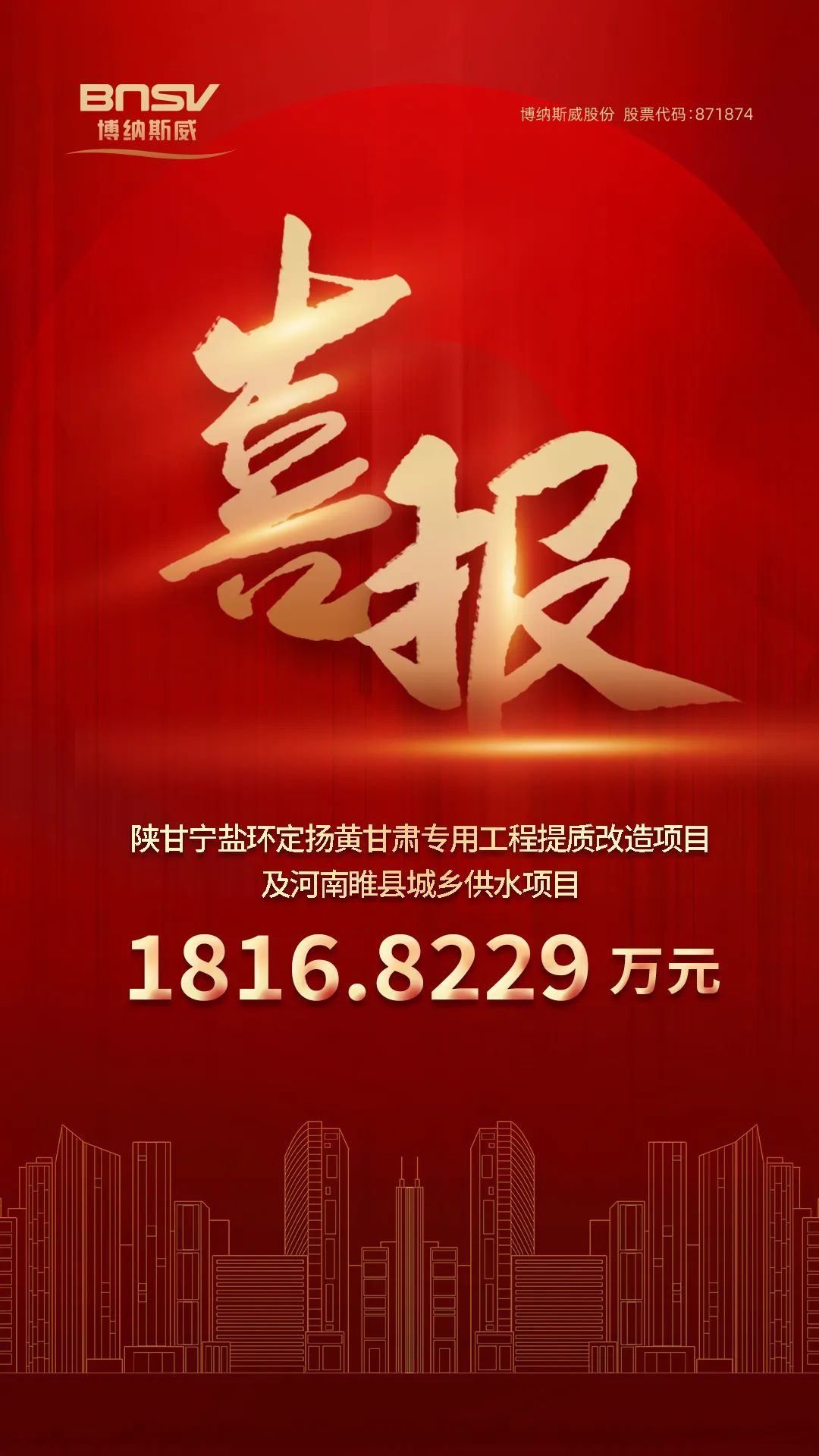 喜報(bào)!博納斯威中標(biāo)陜甘寧鹽環(huán)定揚(yáng)黃甘肅專(zhuān)用工程提質(zhì)改造項(xiàng)目及河南睢縣城鄉(xiāng)供水項(xiàng)目1816.8229萬(wàn)元