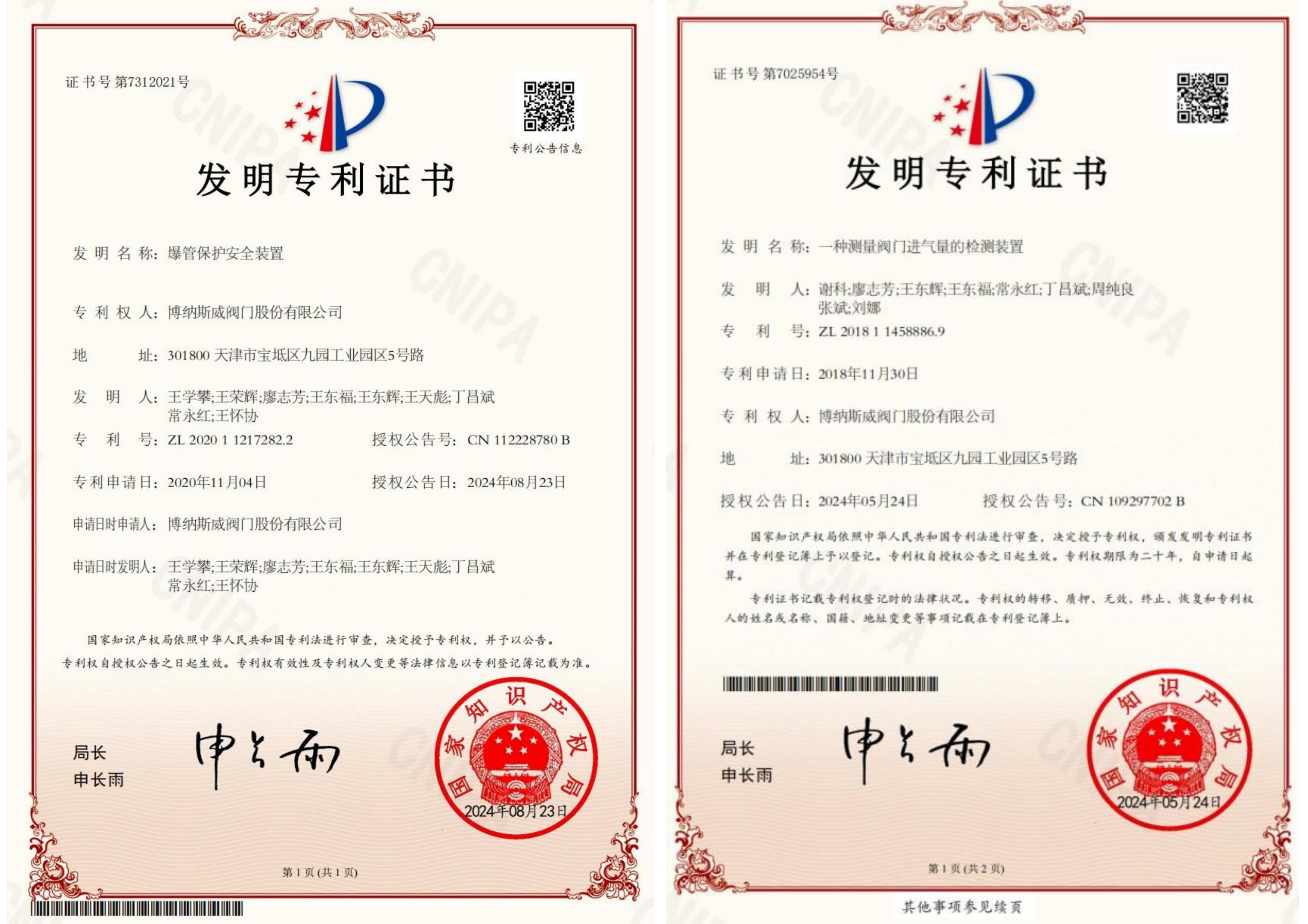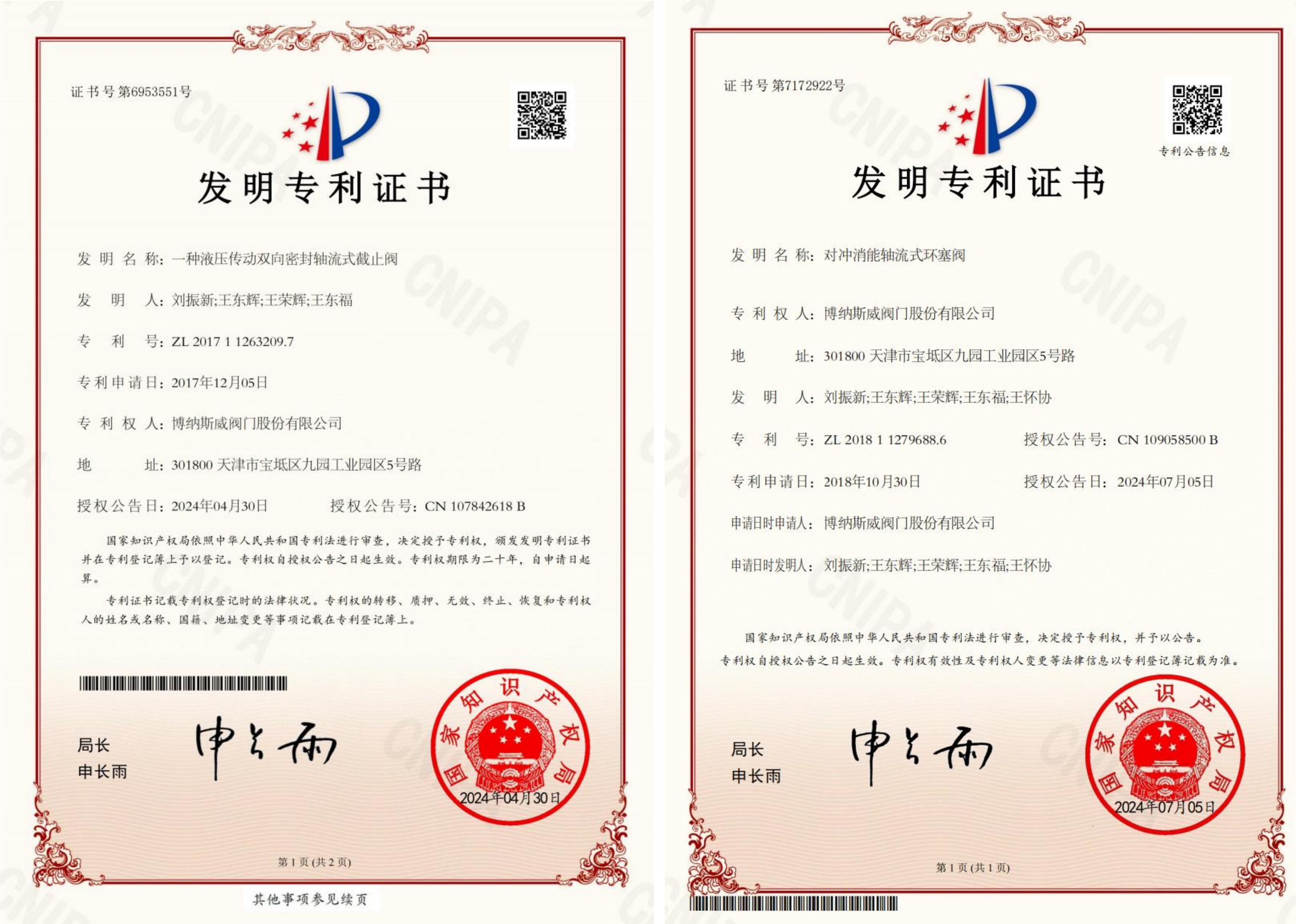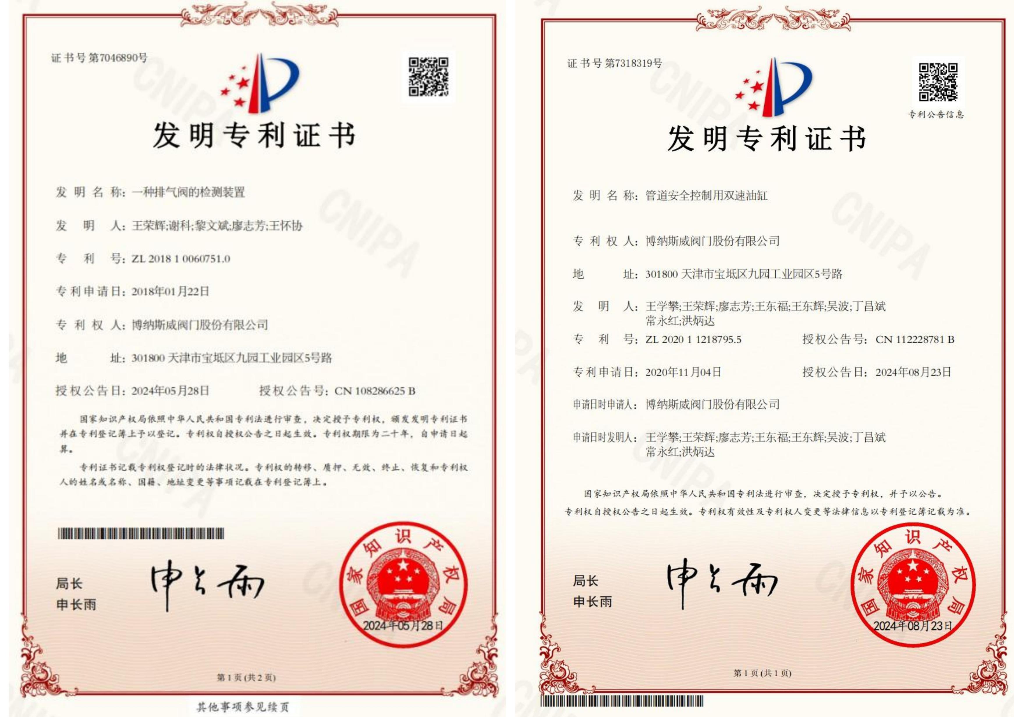 博納斯威閥門股份有限公司在創(chuàng)新領(lǐng)域進(jìn)入了高速發(fā)展階段,2024年公司取得了豐碩成績,成功獲得了五項(xiàng)軟件著作權(quán)與六項(xiàng)發(fā)明專利。