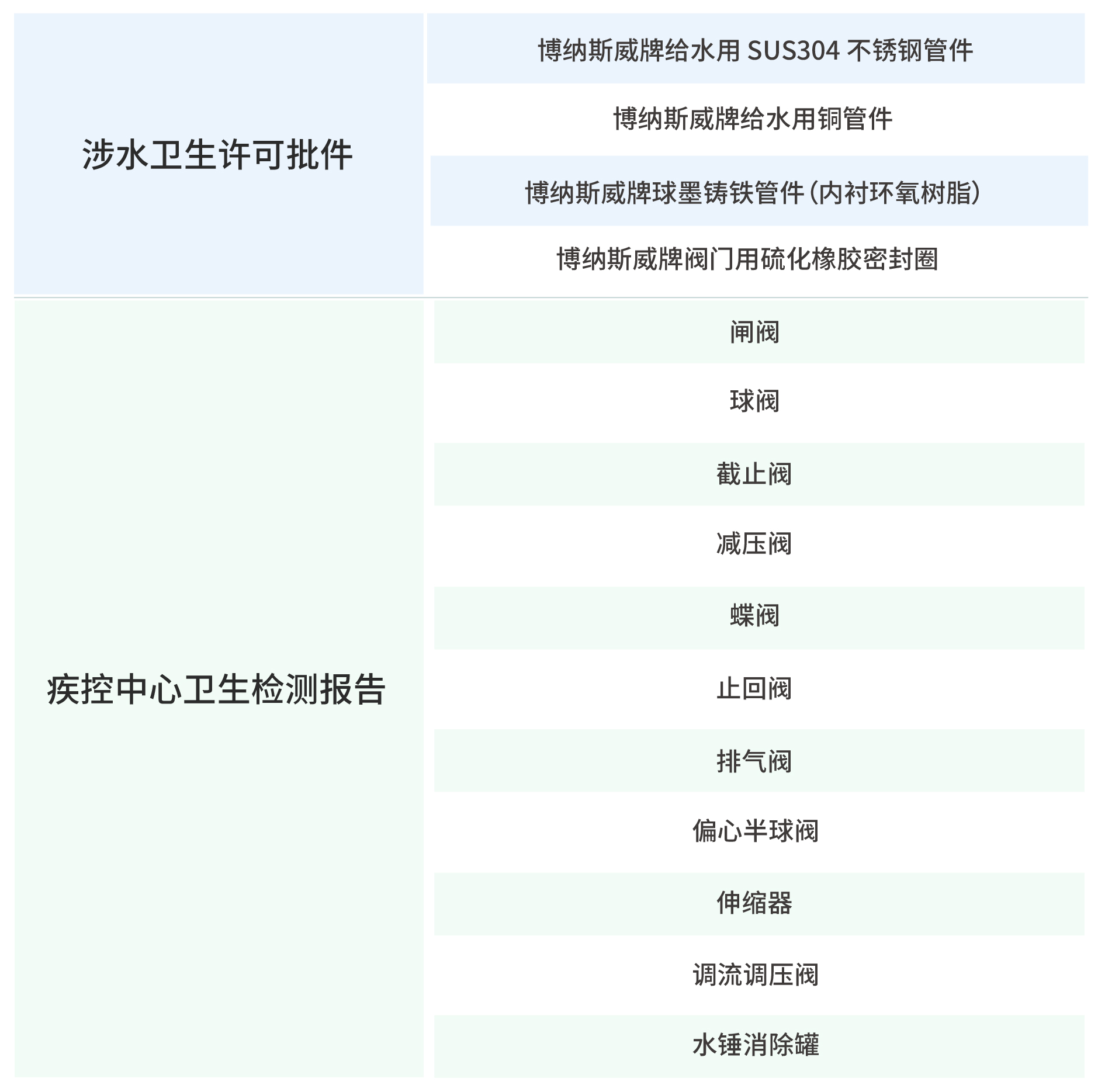 經(jīng)過嚴(yán)謹(jǐn)?shù)馁|(zhì)量審查和檢測流程,博納斯威閥門股份有限公司取得多項涉水衛(wèi)生許可批件及疾控中心衛(wèi)生檢測報告。這些成果充分體現(xiàn)了博納斯威“堅持生命至上 守護用水健康”的理念。博納斯威牌閥門將成為良心供水企業(yè)的首選。