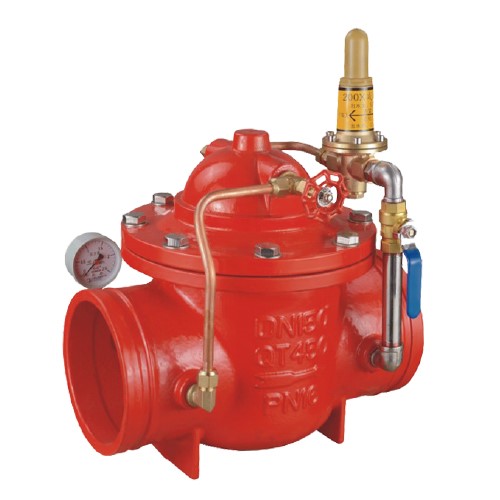 用于生活給水消防給水及其他工業(yè)給水系統(tǒng),是一種利用介質自身能量來調節(jié)與控制管路壓力的智能型閥門。通過調節(jié)減壓導閥,即可調節(jié)王閥的出口壓力。出口壓力不閥進口壓力、進口流量的變化而變化,安全可靠地將出口壓力維持在設定值上,并可根據(jù)需要調節(jié)設定值以達到減壓目的。