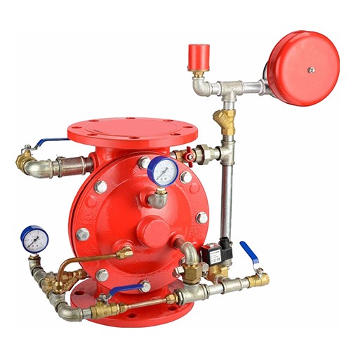 ● 當(dāng)探測(cè)噴頭動(dòng)作后,雨淋報(bào)警閥的監(jiān)控室壓力就會(huì)急劇下降,使雨淋報(bào)警閥自動(dòng)打開進(jìn)行噴水滅火,并報(bào)警。